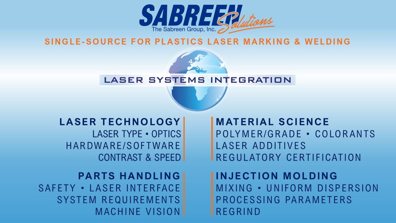 Laser marking plastics additives and colorant compounds, by The Sabreen Group, optimize the process of laser marking and engraving on plastic materials, making them environmentally friendly and ideal for replacing expensive labels, and ink printing processes. Laser-sensitive additives not only increase marking quality, but they also produce chemical and scratch-resistant markings and improving material flow. Recent breakthroughs in colorant technology, such as laser-specific carbon blacks and titanium dioxides, as well as foaming agents, provide superior contrast quality, line edge detail, customized colors, and the fastest speed, including “on-the-fly” marking. Industrial nanosecond MOPA Ytterbium fiber lasers are ideal for marking plastics because of their capability to produce short pulse width waveforms.